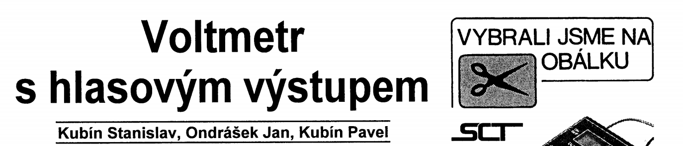 Stanislv Kubín vydal kdysi dávno dvě knížky plný návodů pro amatéry. A v titulu Konstrukce, které vás rozzáří popisuje akustickej generátor "čtoucí" výstupní údaje z převodníku ICL7106 jako "hlasovej výstup 3 1/2 místnýho voltmetru" . Tu knížku někde mám zastrčenou, musel bych ji vykutat - ale možná by stálo za to se inspirovat ... _________________ Nasliněný prst na svorkovnici domovního rozvaděče: Jó, paninko, máte tam ty Voltíky všecky...