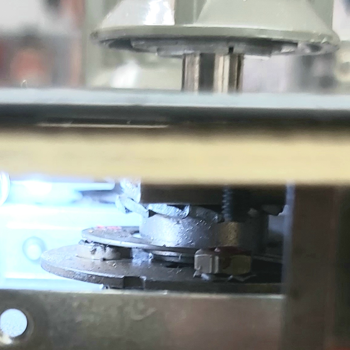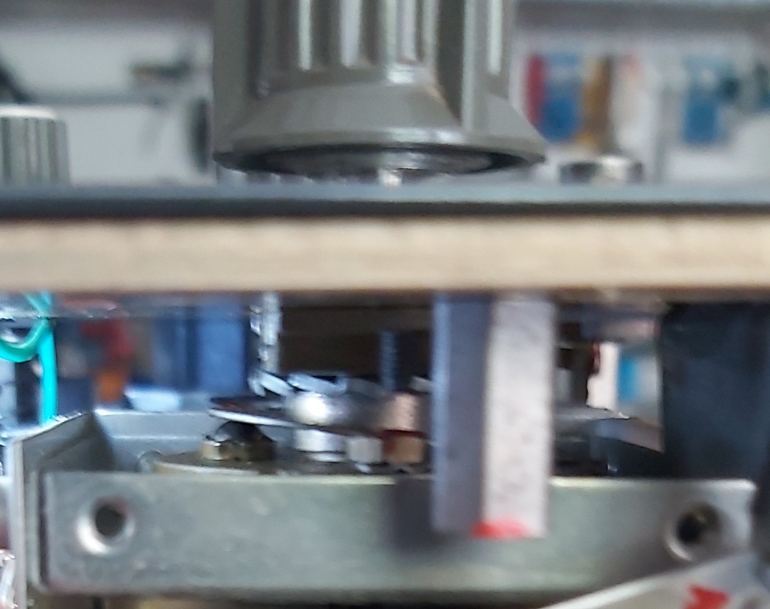 Už dlho hľadám, kde sa tá aretácia nachádza. Skrátka nič tam nevidím, aj keď mám zhodený bočný plech pri prepínači. Na prepínači časovej základne tam je to vidieť a je to jasné.