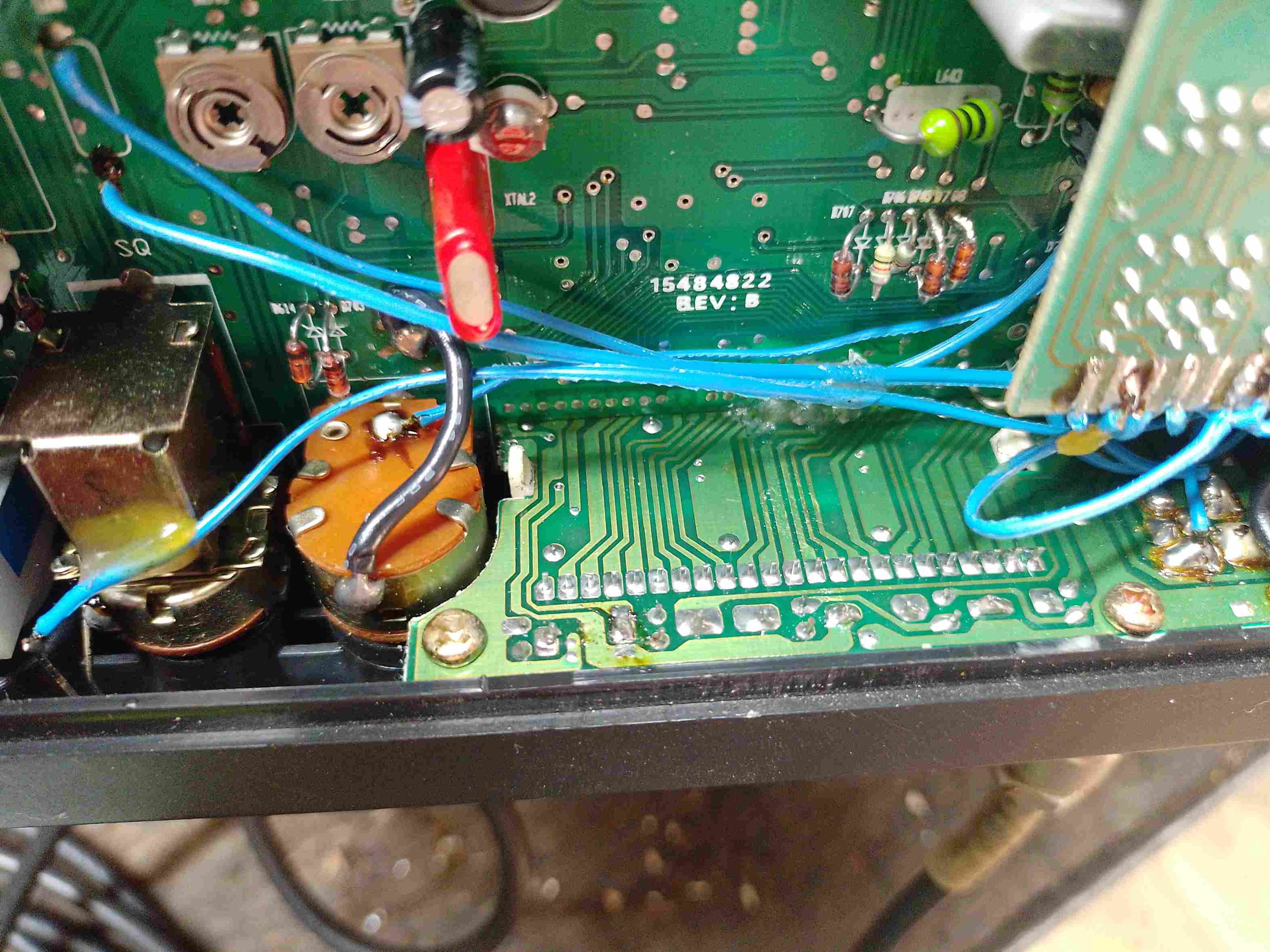 Tak jsem tootevřel. Jen propojení u displeje nevidím. Tlačítko MO/RF vůbec nereaguje. Pokud zkusím udělat 3 hmat, tak po zapnutí mám pouze 23 kanálu. Musím vypnut stanici chvíli počkat a vrátí se na 40 kanálů. Ještě jsem koukal že tam vlastně ještě dodělával tu tónovou volbu.