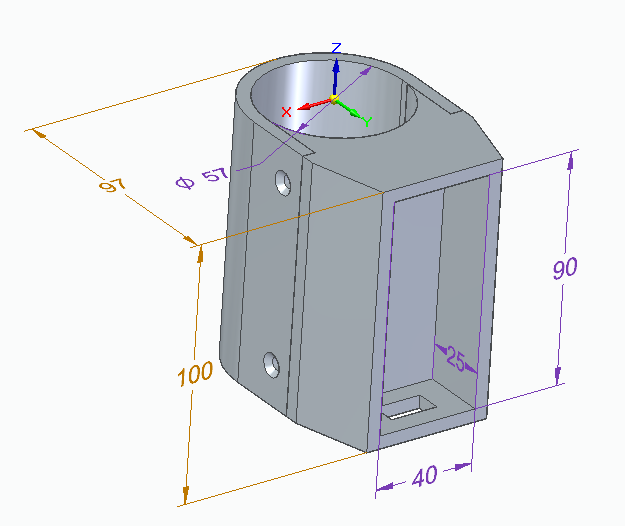Potřeboval bych navrhnout krabičku na přidělání elektroniky s tlačítkem na kovový sloupek, tak aby to šlo vytisknout na Průšovi.