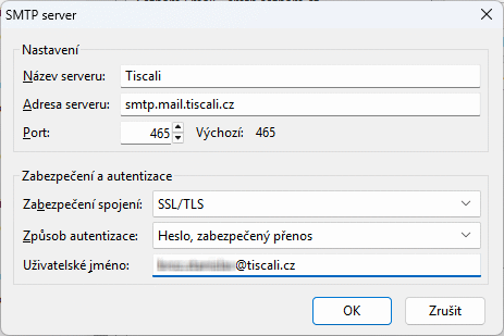 Tento je funkční: smtp.mail.tiscali.cz ....