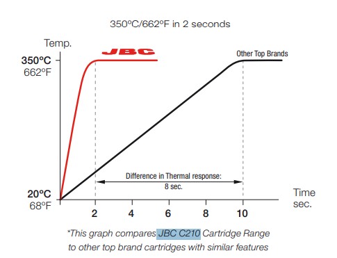 Tam je termočlánek opravdu jen pár mm od špičky hrotu a regulace pak podle toho vypadá.