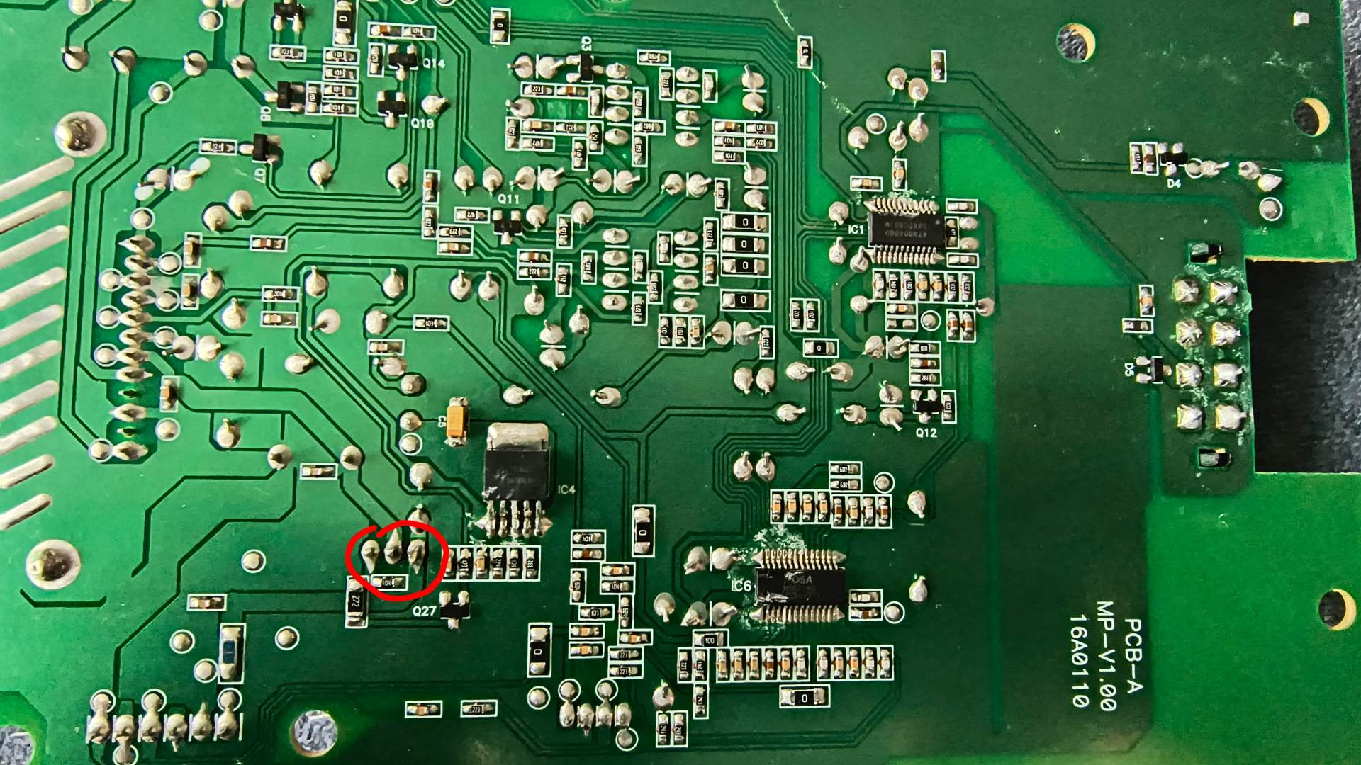od toho tranzistoru to jde přímo na IO koncáku, hádám, že to odnesl taky . . .