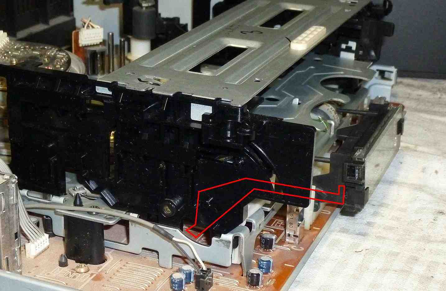 Mám tu video SONY SLV-E180, a chýba v ňom otvárač dvierok (tá vec čo som načrtol červeným). Nemáte niekto z nejakého vraku? Mal by pasovať aj z iného modelu.