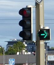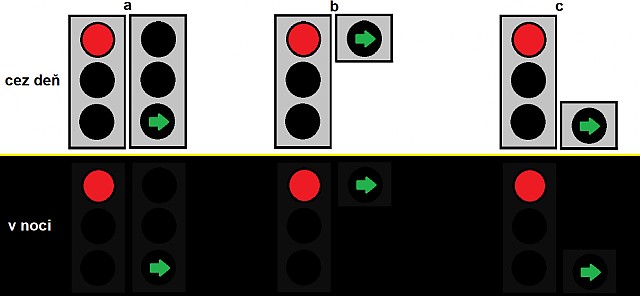 Ale jde o polohu té šipky. Vedle zelené je opravdu hloupá a je možné si ji pak v noci splést se standardní šipkou, při které má vozidlo přednost. Ale definici polohy jsem ve vyhlášce nenašel, asi to bude jen v nějaké normě pro značení.