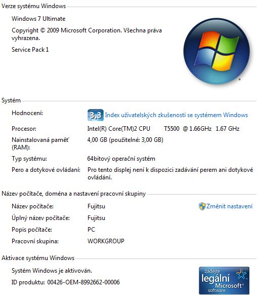 4GB je málo, zřejmě 1GB slouží jako sdílená paměť pro grafiku.