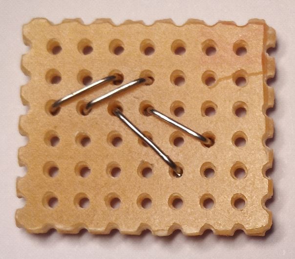 Ale ak má niekto pocit, že na univezálny plošák naspájkuje súčiastky len tak z hlavy bez návrhu, tak nech si to skúsi. Napríklad tento prevodník poskladať tak, aby kontakty neboli pomiešané spolu na jednej strane, ale aby nízka úroveň bola zvlášť na jednej strane a vysoká na opačnej strane. Výsledkom bude poznanie, že lúštenie krížoviek je pre amatérov.