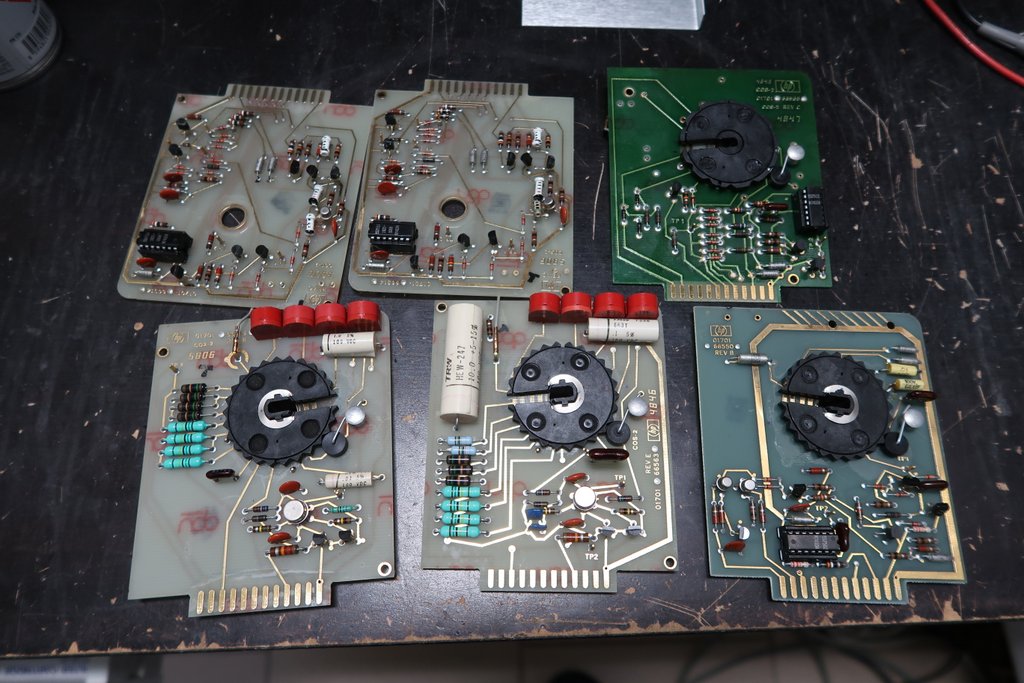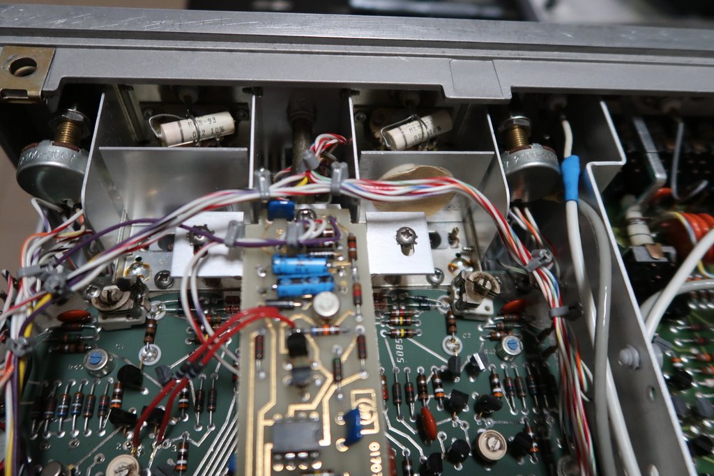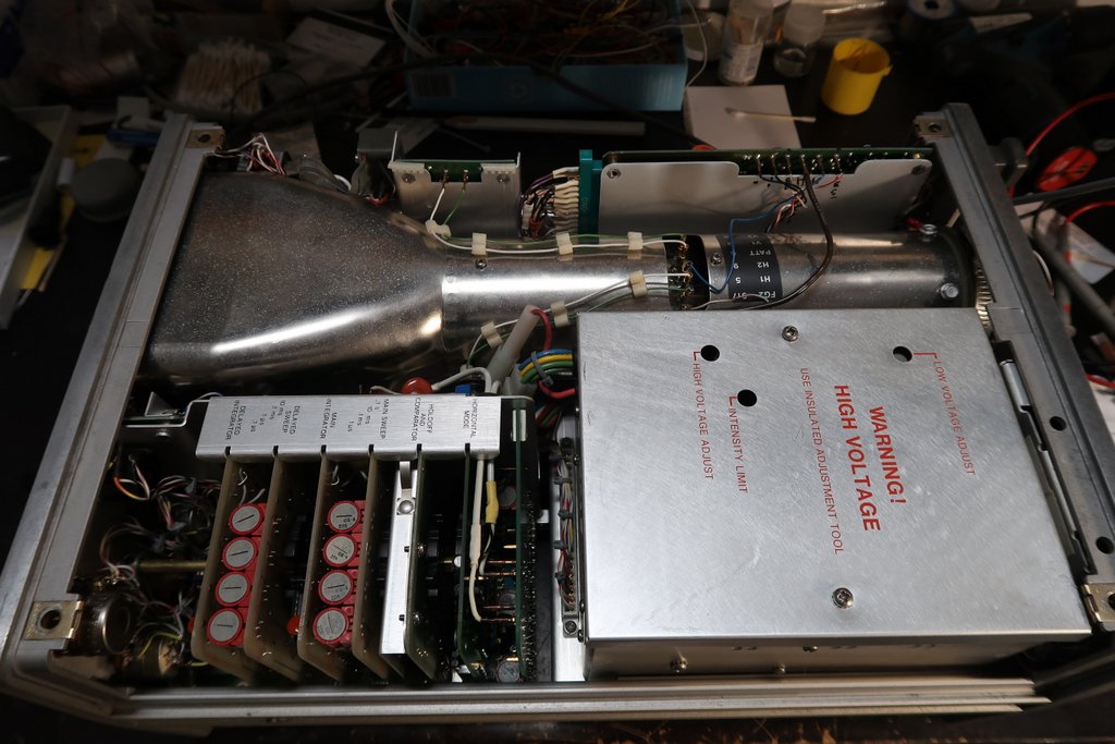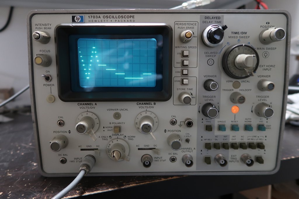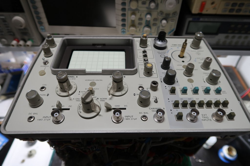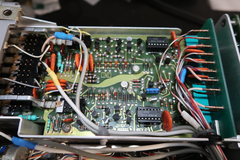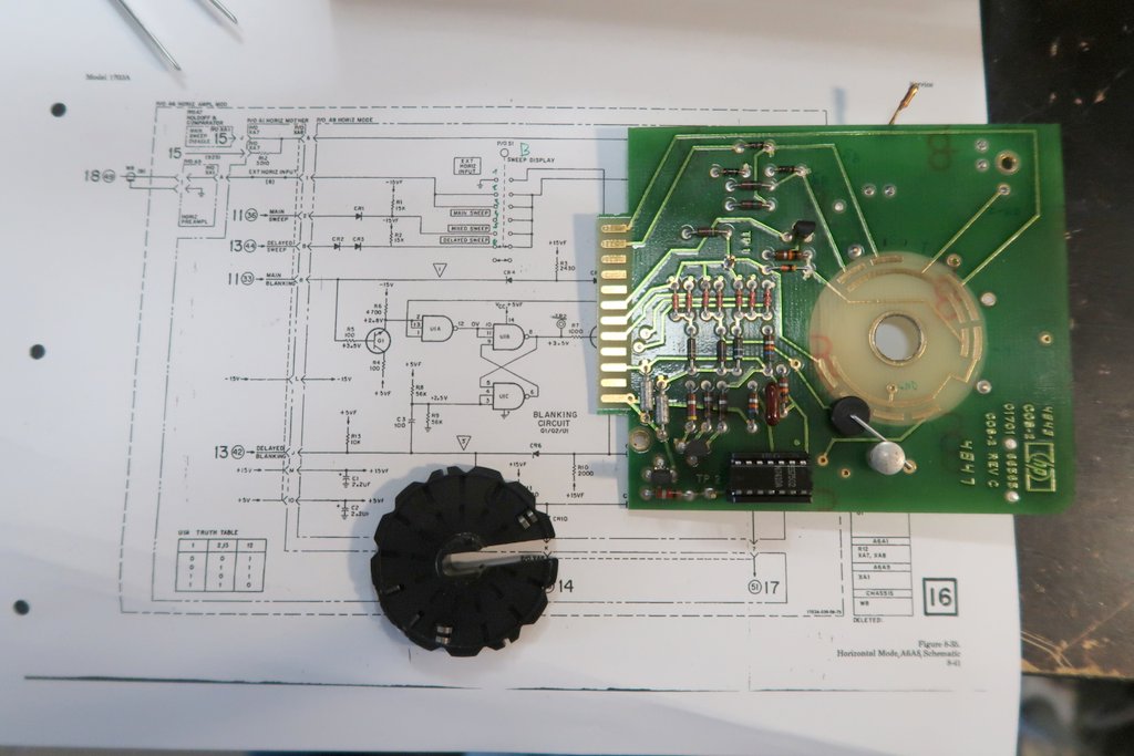 Tentokrát přišla řada na osciloskop který není od Tektronixu ale od HP. Líbí se mi jejich řada 17xx, tak jsem si v minulosti pořídil dva kousky a jeden z nich teď přišel na stůl. Problémů byla celá řada. První a hned viditelný, byly knoflíky. Mají mosazné jádro obstříknuté plastem. Ten se za čas smrštil a popraskal. Některé knoflíky měly jen jednu nebo dvě praskliny a ty šly v pohodě opravit. Pak tam byly kousky, které jsem lepil až z osmi kousků. Samostatná kapitola byl knoflík časové základny, který jsem musel ještě pořádně vyztužit kusem plastu, protože jsou na něm dost velké síly. Jeden knoflík byl nahrazen hnusem od tesly, tak jsem tam dal alespoň knoflík z Teku, který tam pasuje dobře vizuálně.