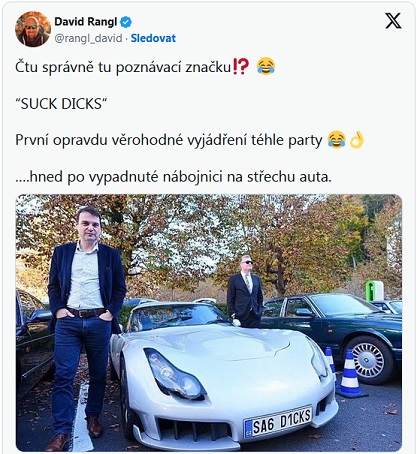 No další naši reprezentanti mají na autě SPZ na přání s nápisem, že kouří č...ky. Otázka je komu?