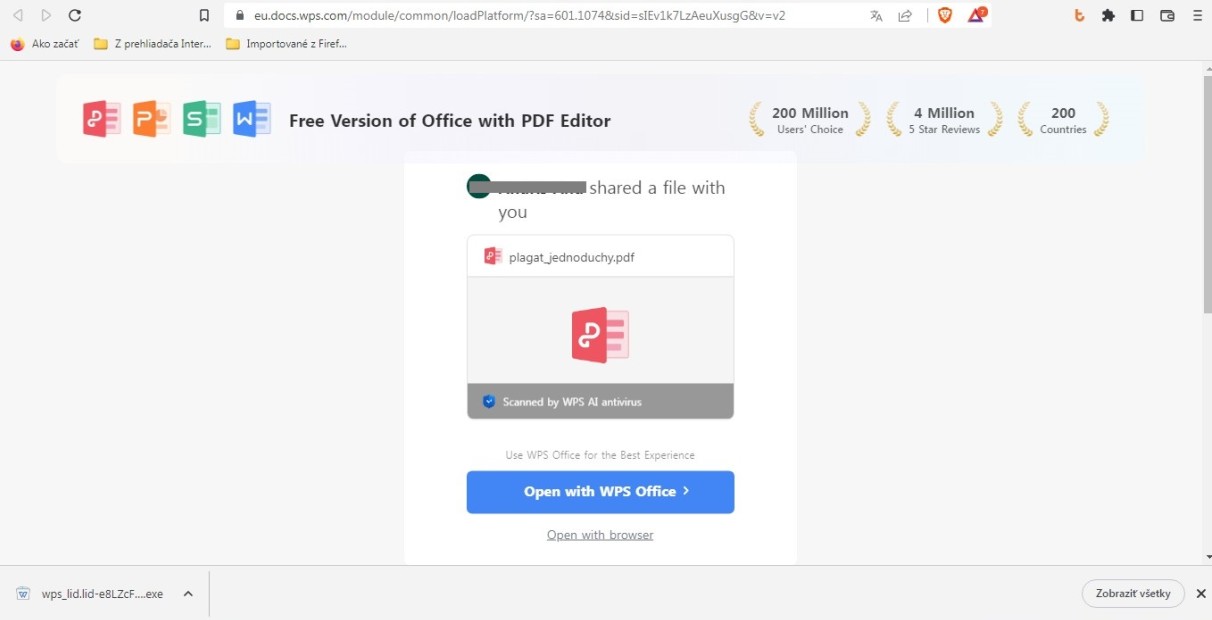 Weď to máš v tom 5. obrázku z mailu, modré tlačítko: "Otvoriť vo WPS Office".