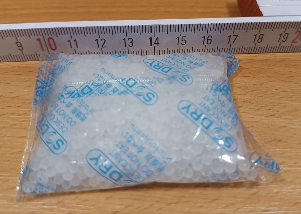 Ideálně této velikosti: https://www.conrad.cz/cs/p/pohlcovac-vlhkosti-sacek-1-g-d-x-s-x-v-40-x-30-x-3-mm-transparentni-silikagel-250-ks-2523989.html