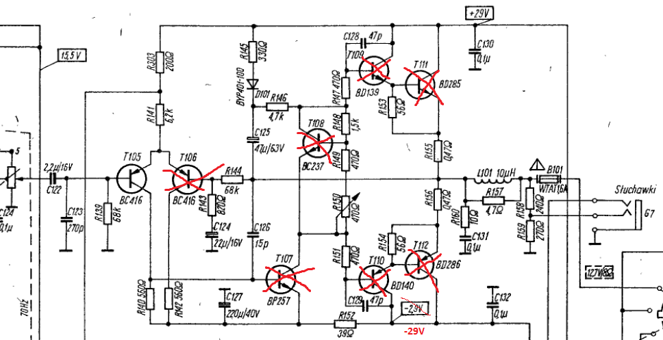 Ešte.. Pozerám na nejaké foto z poľských stránok a v napäťovom zosilňovači je použitý BF457(TO126/160V)