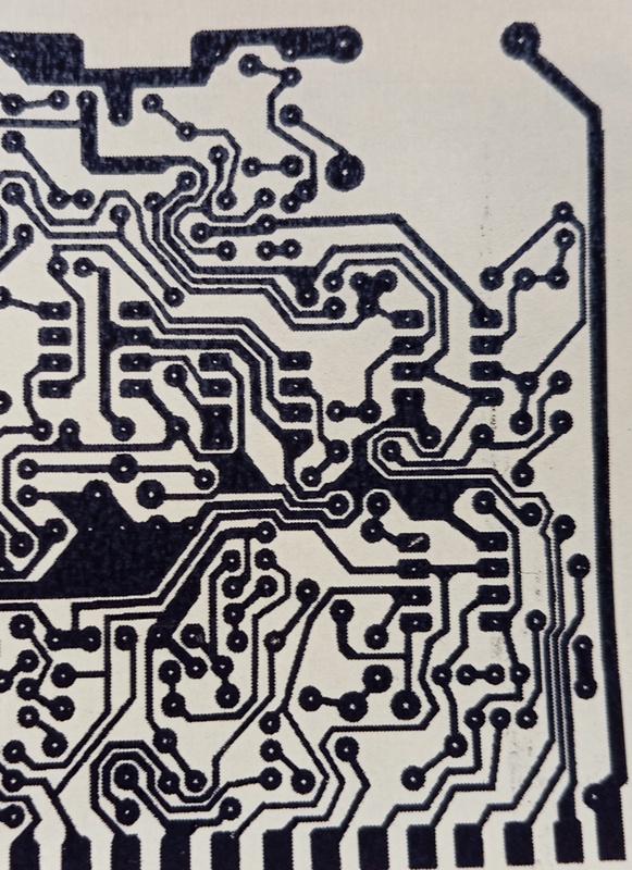 Ale nejlepší je opravdu fotografická cesta. Návrh donesu do místního kopy centra, tam mi to vytisknou na průhlednou fólii (naposledy neměli fólii, tak jsem zkusil pauzák, taky to šlo, jen byla potřeba delší expozice). Blbý je, že toner netvoří souvislou plochu a tak se občas (poměrně ojediněle) nějaký vlasový spoj přeruší. Ale pořád to je nejlepší výsledek s nejmenším úsilím.
