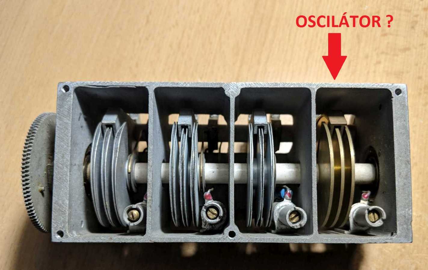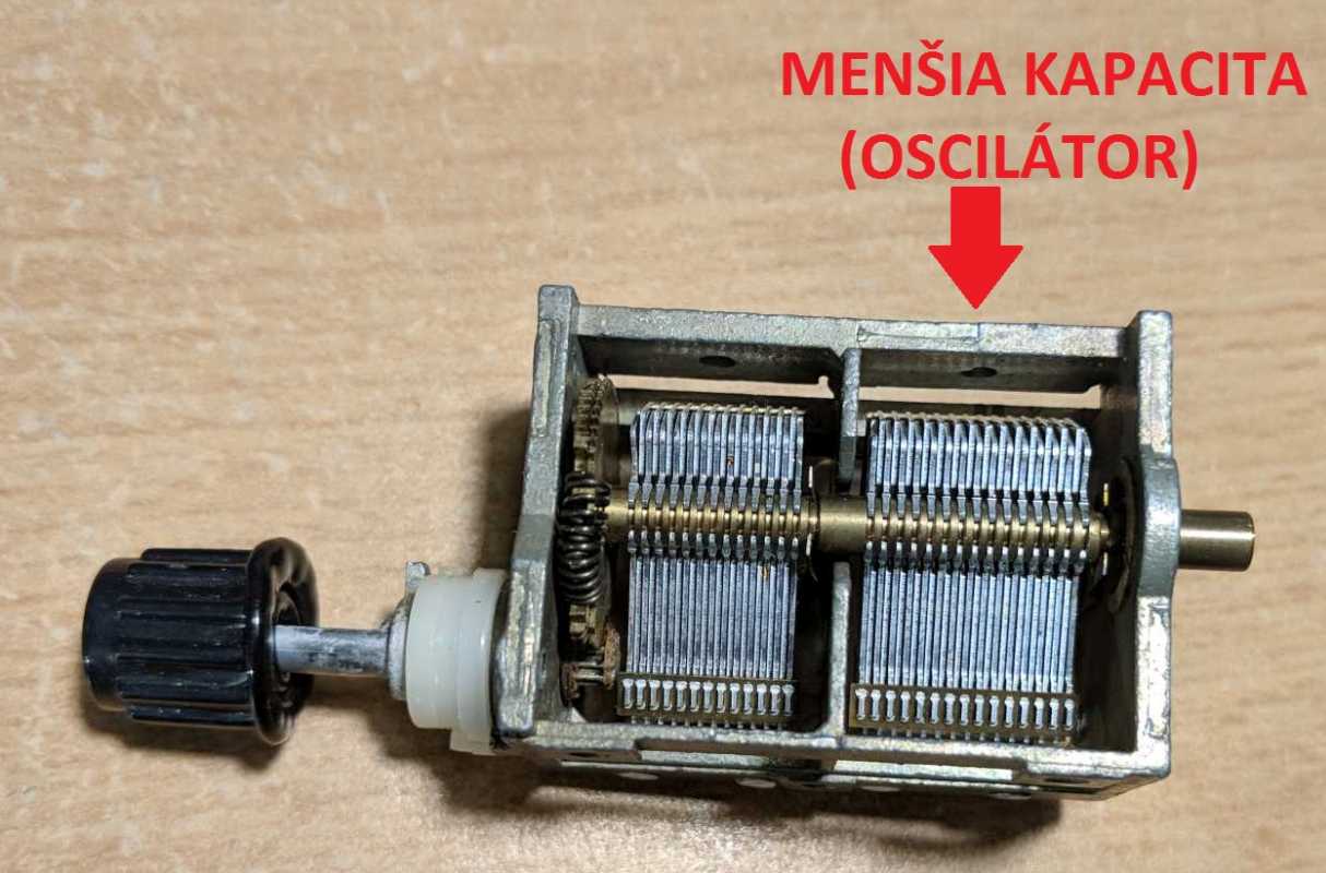 Niektoré kondenzátory majú rôzne veľké sekcie, pričom oscilátorová má väčšie rozmery - viac plechov. Pritom oscilátor vyžaduje menšiu max. kapacitu ladiacej sekcie, takže táto by mala mať menej plechov než sekcie určené pre vstupné obvody. Všimol som si to u kondenzátora, ktorý sa u nás často objavuje - myslím, že je to polská Eltra. Oscilátorová sekcia má viac plechov, pritom ale menšiu kapacitu. Medzery sa zdajú byť rovnako široké, ako u druhej sekcie. Prečo sa oscilátorová sekcia robí s väčším počtom plechov a ako sa v tomto prípade dosiahne menšia kapacita?