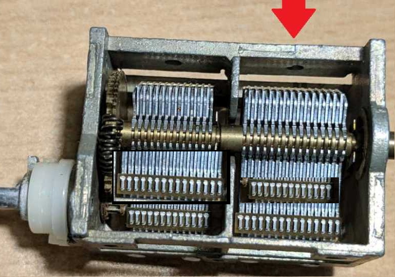 Kvalitntnejšie ladiace kondenzátory majú plechy z mosadze. V čom spočíva výhoda mosadze voči hliníku? Menšia teplotná rozťažnosť, alebo väčšia pevnosť pri tenšom plechu => menšie chvenie a menšia mikrofonickosť? Hlinik je mäkší materiál a tak by mohol mať menšiú náchylnosť kmitať. Niketoré kondenzátory sú kompletne mozadzné, iné majú mosadznú jednu sekciu - predpokladám, že oscilátorovú. Prikladám fotku kondenzátora z nejakej rádiostanice, kde iba jedna sekcia je mosadzná.