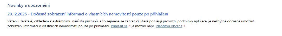 Zaslal: čt leden 01 2026, 11:23 Předmět: Katastr nemovitostí - přístup od 1.1.2026 - změna ?