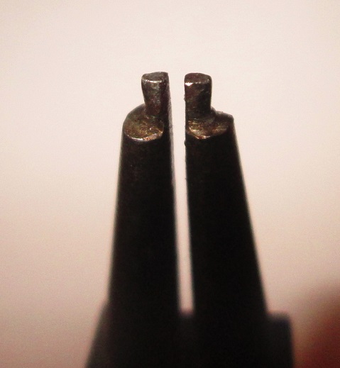 Doporučuji vypilovat z běžných malých kulatých kleští tento tvar. Pokud budou mít kleště na špičce největší průměr který se bude nepatrně zmenšovat dle obrázku, tak ty pojistné kroužky drží, nevystřelují a na rozdíl od plochých šroubováků jsou jedny kleště použitelné na všechny (asi 4 ) nejčastější průměry pojistných kroužků. Čelisti ve vypilují dle nejmenší používaného kroužku a větší jdou bezproblémově.