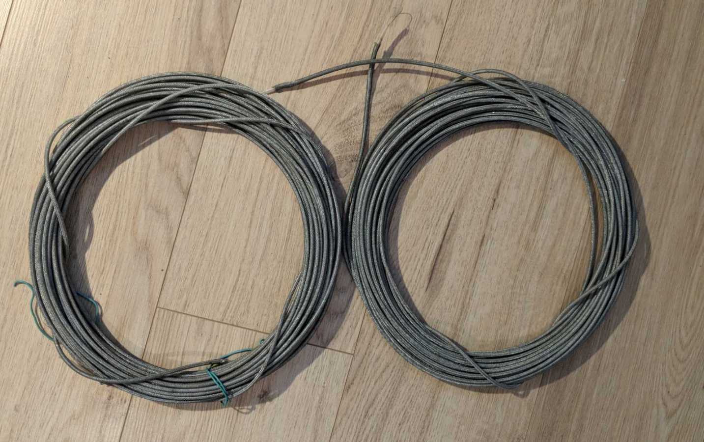 Kábik s kovovým opletom, priemer 4 mm, vo vnútri žila z niekoľkých medených pramiekov. Asi do starých rádiotechnických zariadení.