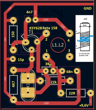Autor si nedělal starosti s tím jak popsat připojení těch čtyř vývodů oscilátorové cívky, připojení jsem vydedukoval podle jiných schémat a naznačil jsem to v obraze DPS, nemůže tady být něco špatně?