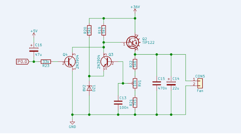 Potreboval by som upraviť otáčky ventilátora na nižšie pretože intenzita vzduchu je vysoká. Pri najmenších otáčkach je na 24V ventilátore 15.7V Jedná sa o delič R21 R22 a potenciometer RV1. Za akúkoľvek pomoc ďakujem