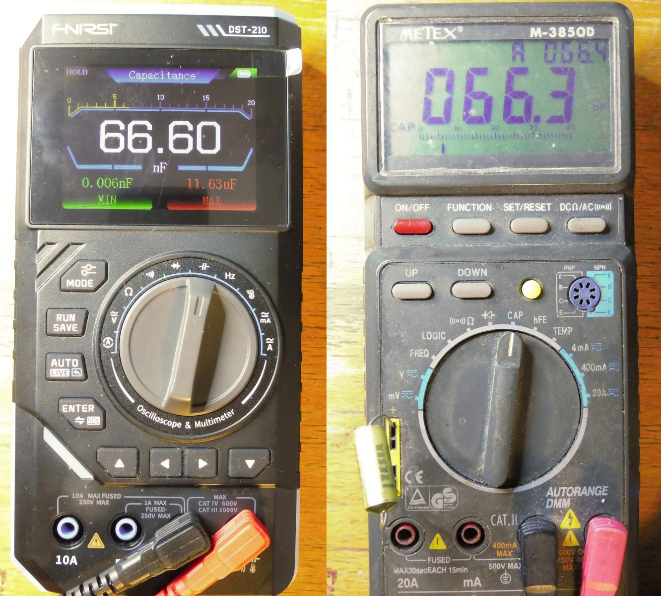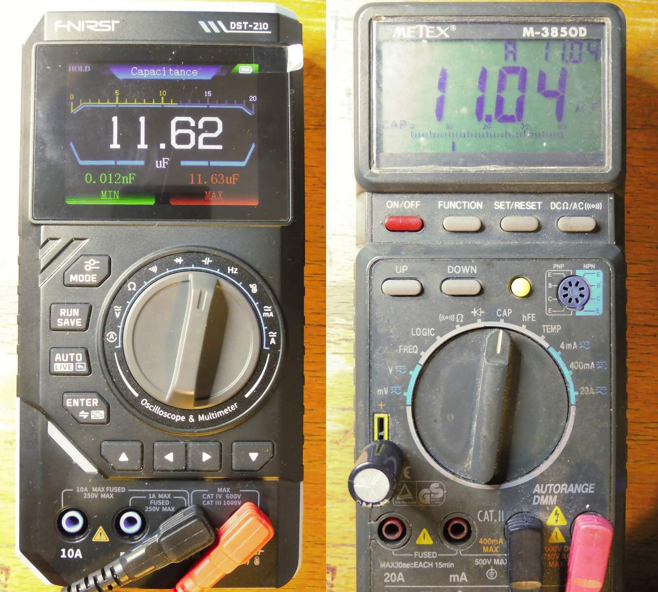 Přesnost je lepší, než deklarovaná: Metex jsem nechával ověřovat nějak před dvěma lety a po odečtení jeho chyby se údaje shodují. Tedy na naměřená čísla se dá spolehnout přinejmenším při měření napětí, proudu a odporu.