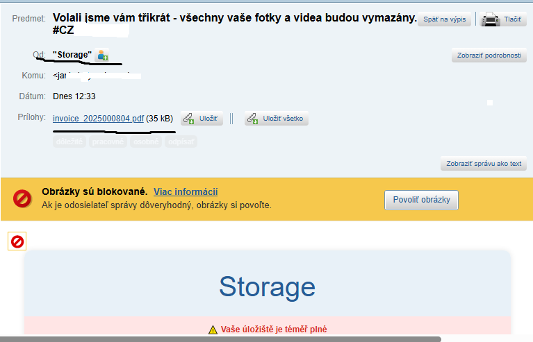 Zaslal: út únor 10 2026, 19:44 Předmět: Podozrivý mail- čo s tým.