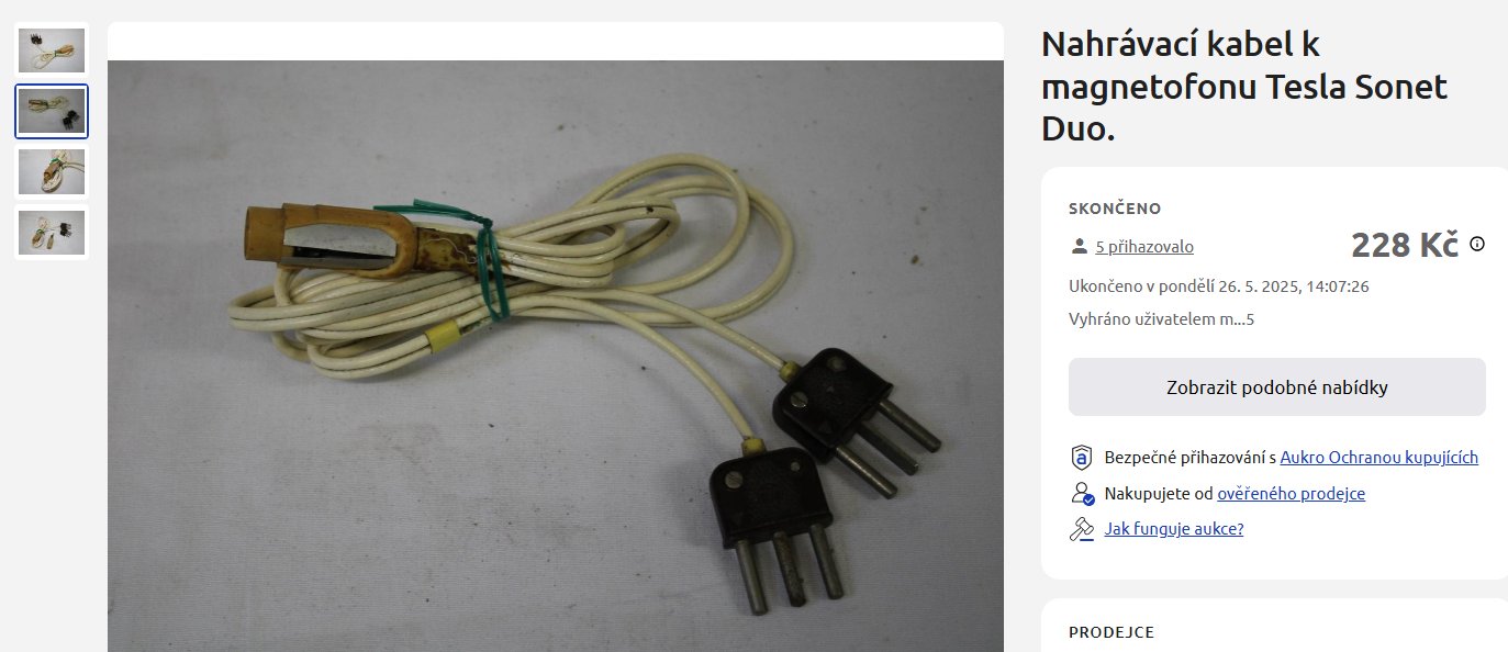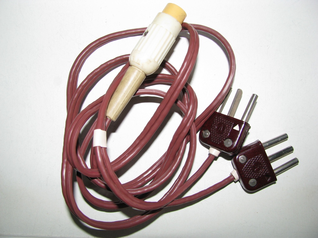 A ten první s krémovou rukojetí a červeným čudlem ke dálkový ovládání k diaprojektoru, nevím přesnej typ, ale takovej ten hřebínek je oboustranně fungující kolíbka, kterou se ovládalo ostření projektoru na projekční plochu. _________________ Nasliněný prst na svorkovnici domovního rozvaděče: Jó, paninko, máte tam ty Voltíky všecky...