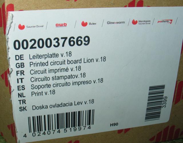 Dostala sa mi do ruk odlozena doska s oznacenim "0020028434" na nalepke. Vlozena v obale s oznacenim "0020037669" - Doska ovladacia Lev v.18. Pravdepodobne vybrata z kotla a vlozena v obale od novej - takze budu asi zamenne (na fotkach vyzeraju identicky).