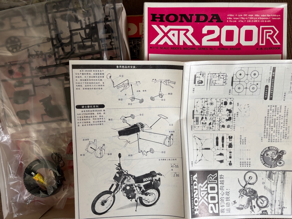 Honda XR200R. Kompletní nevylámané sady dílů (ve třech barvách), lepidlo, pružinové tlumiče, návod.