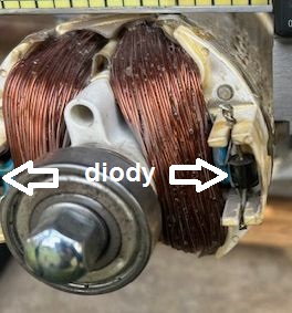 Včera mi volal kamarád že má centrálu která po přetížení přestala pracovat. Nějak mě překvapilo, že rotor nemá kartáče k regulaci, jsou na něm jen dvě diody. Jak to vůbec funguje? Nevšiml jsem si na statoru žádného regulátoru, měl jsem se asi líp podívat.
