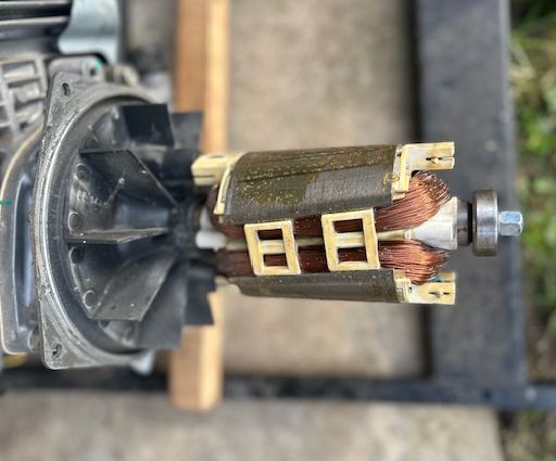 Proč by měl mít motor nějaké kartáče. Je to poháněné spalovacím motorem, který má svíčku. Jinak by to měl být asi čtyřtaktový jednoválec. Ten spalovací motor je zcela logicky spojený s rotorem toho generátoru a na statoru se ze dou cívek odebírá napětí 240V. Pokud to nemá AVR, které pro regulaci bere napětí s druhých dvou cívek ve statoru, tak to jde jinak na regulaci motoru pro těch 3000 otáček za minutu.