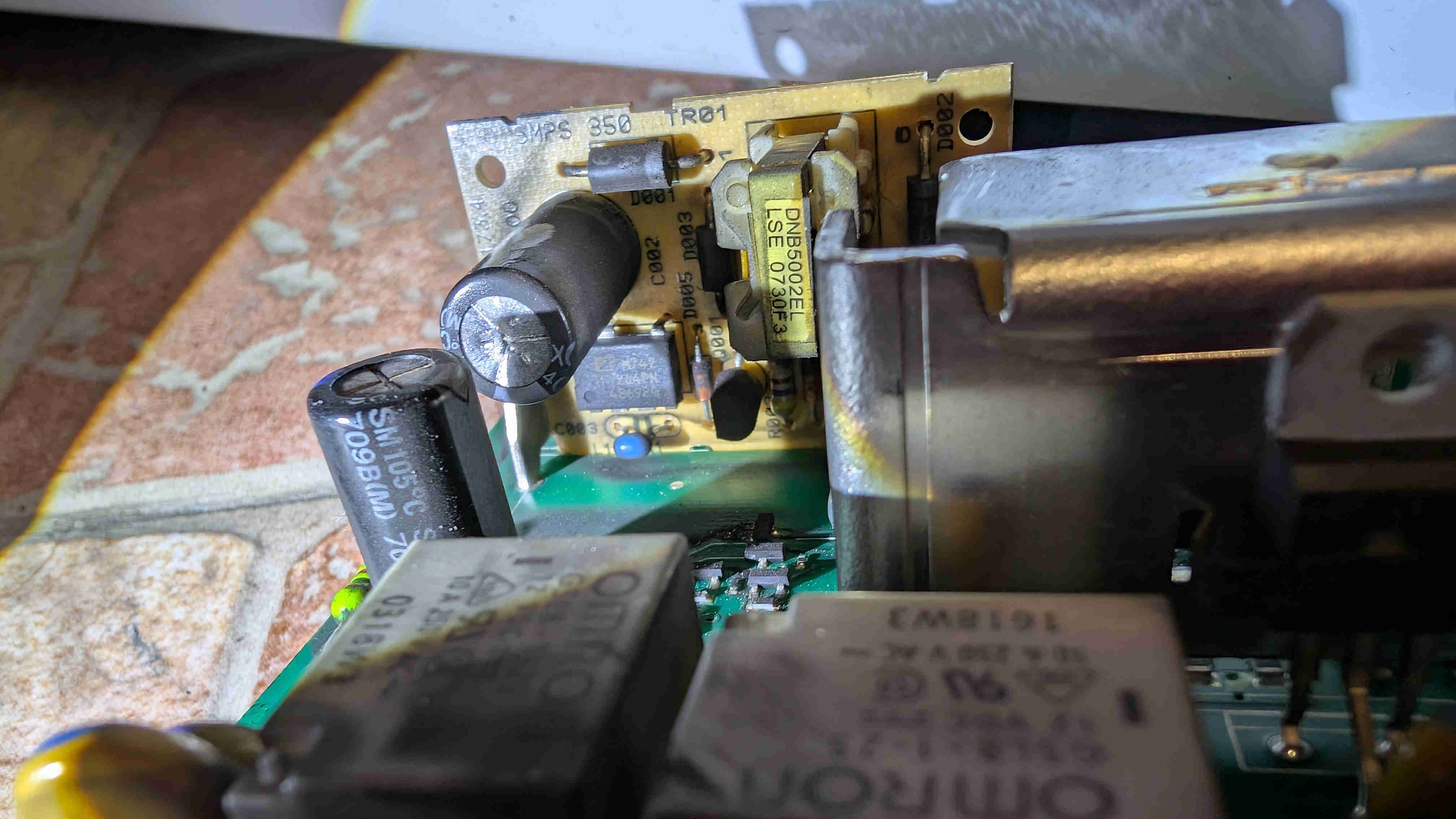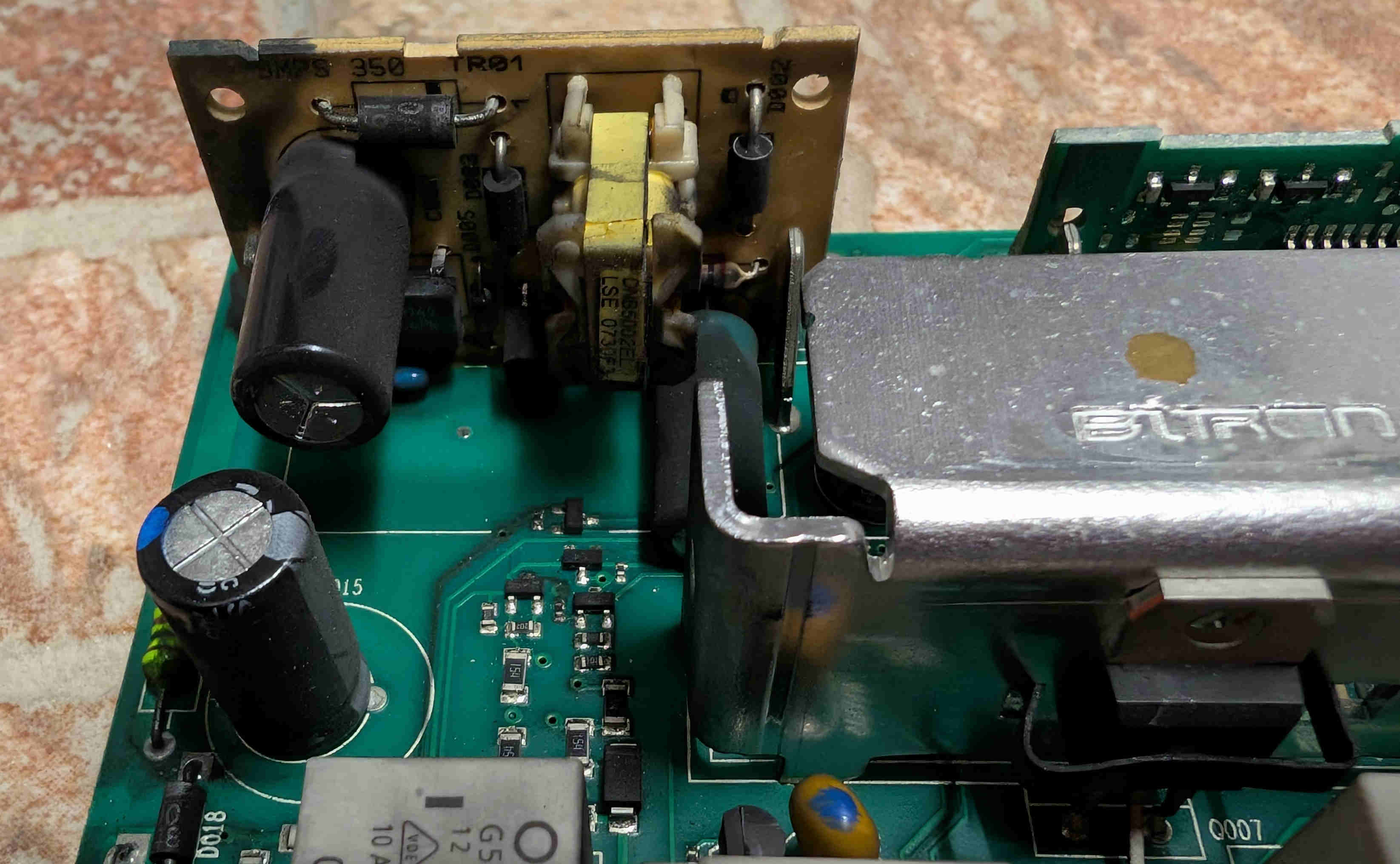 Rozdělal jsem ŘJ. Není spálená, kondíky nejsou nafouklé. Nicméně, na boardu, některých součástkách, ale taky vyloženě na měděných cestičkách na boardu je takový jemný černý prach. Možná z uhlíků. Možná to způsobilo zkrat, ale když jsem přiložil hroty pípáku blízko sebe na takovou součástku, žádný odpor jsem nenaměřil. Není to hrubý prach, který se usazuje třeba v TV přes horní mřížku pro odvádění tepla.