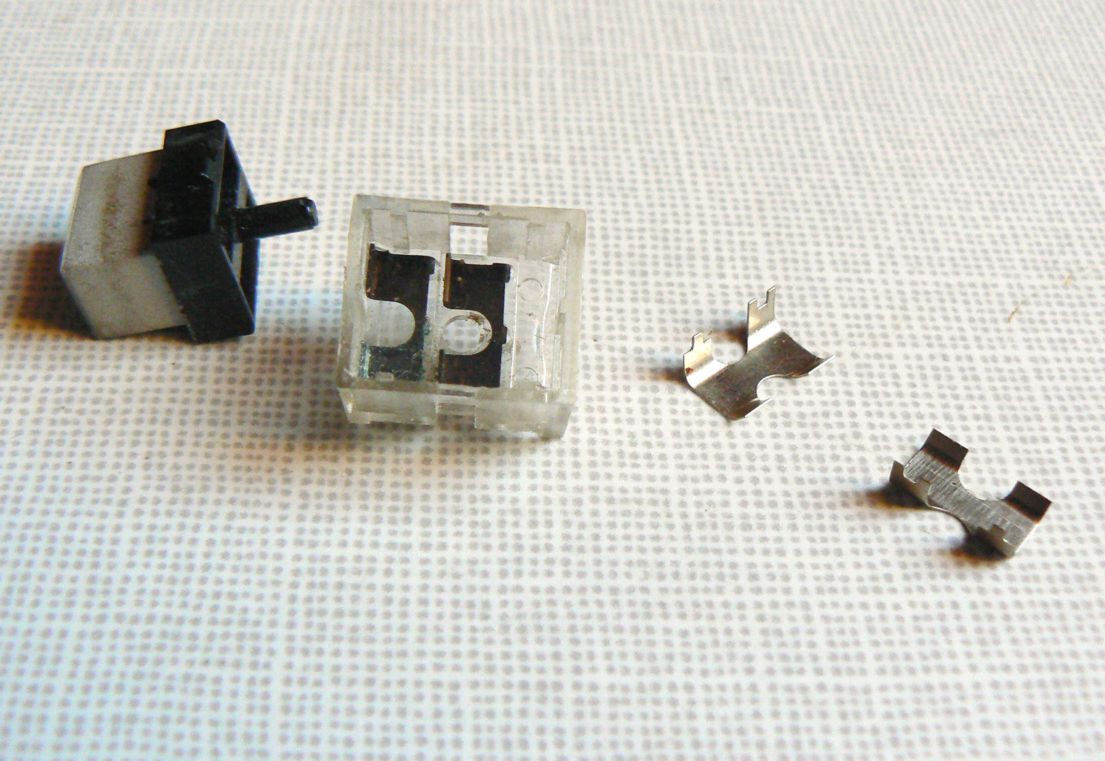 poprosím o identifikáciu mechanického spínača zrejme z produkcie Tesla, kváder cca 1 x 1,4 cm, dva vývody zospodu, ak si dobre pamätám boli použité v klávesniciach nejakého tuzemského počítača, spínali pomocou dvoch pružiniek do X a boli extrémne nespoľahlivé. Reálne foto nieje, táto megapixel fotka je jediná, čo som našiel na nete