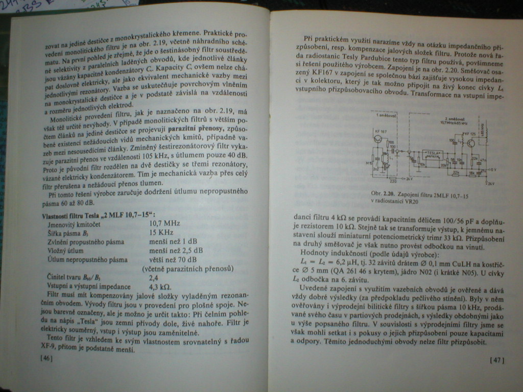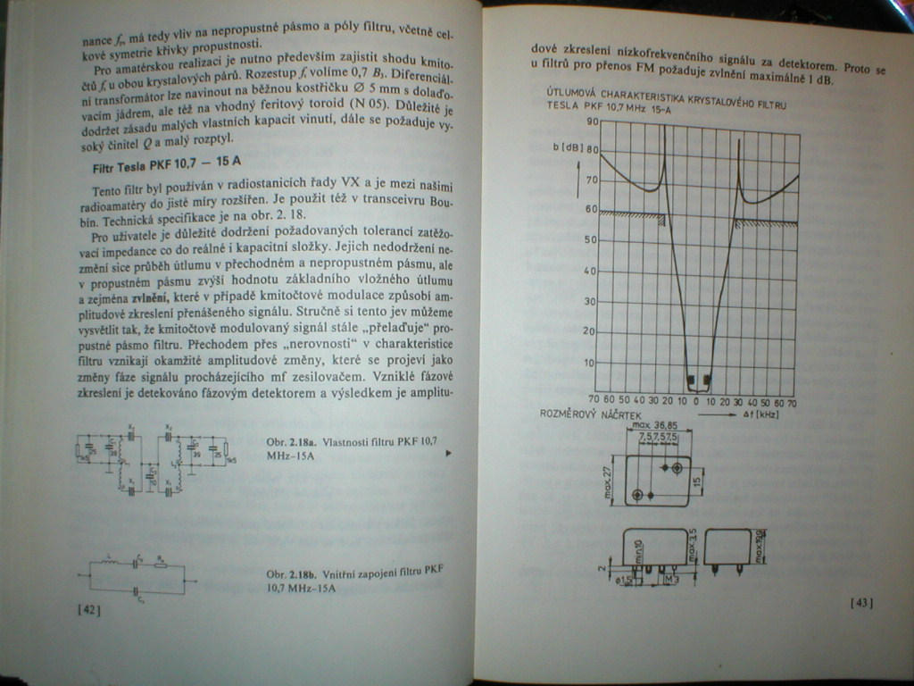 Chtěl bych poprosit amatérskou veřejnost o info ku krystalovém filtru s označením TESLA 10.7 MHz/15A. Je to kovová krabička 3,5x3x2 cm, ze spodu dva vývody a dva šroubky asi M3. Jeden vývod je označený červenou tečkou. Je to pravděpodobně z vojenské RF 10. Pokud by byl někdo ochotný podělit se o informace jako je vstupní a výst. zátěž šiřka pásma pro 3,6 a 40 dB, případně obvodové schémy s NE612, A220,223, 225 SO 42 atd. ,dovoluji si mu dopředu poděkovat.