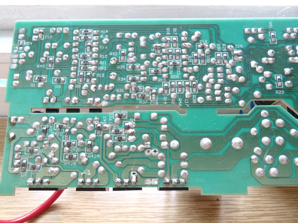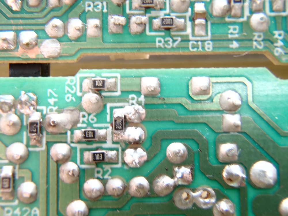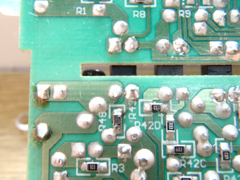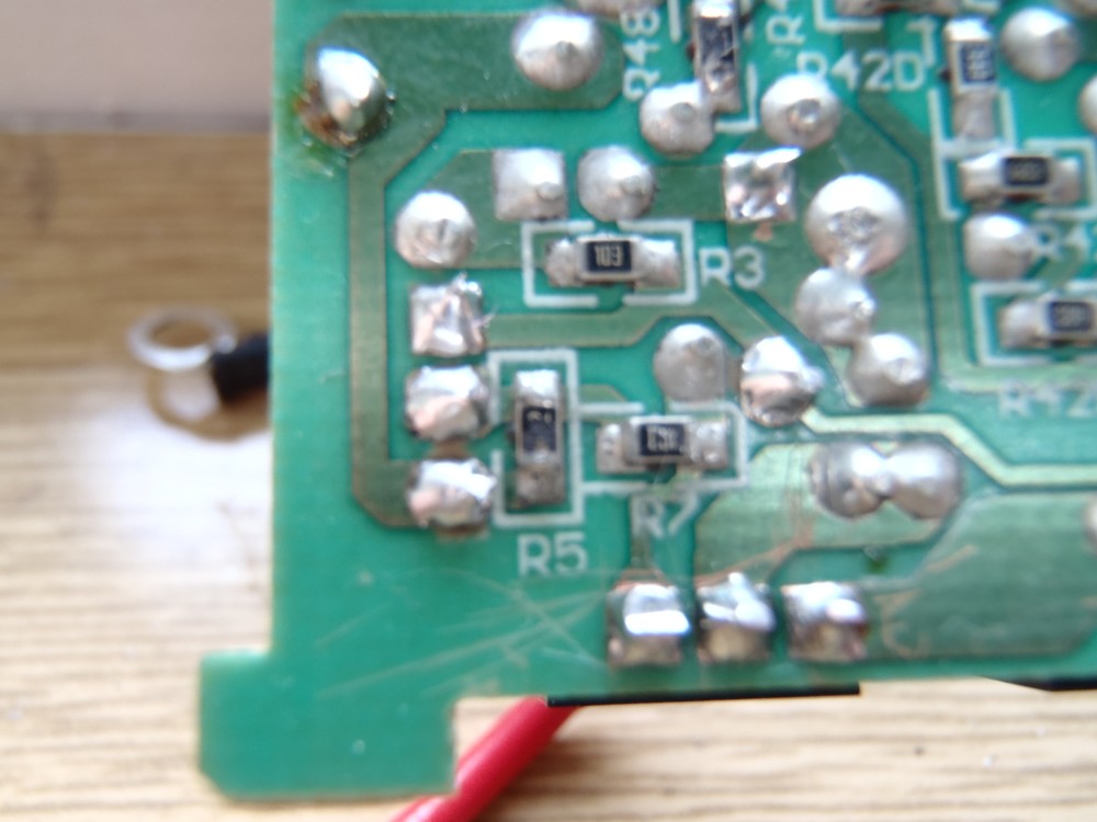 SMD odpory R4, R5, R47, R48 které jsou vypálené a přerušené