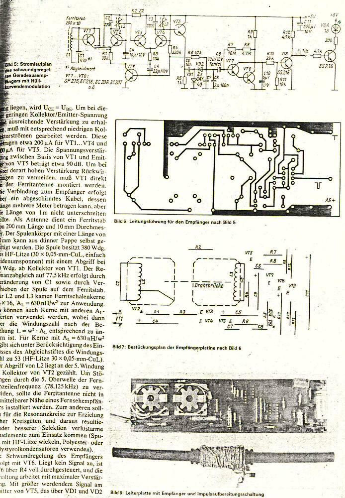 Dokonce jsem vyhrabal desku, na vstupu to mělo dvoubázovej FET tuším KF 910, přijímač byl A244D a jako fázový závěs fungovaly 4 operáky- B084D. Anténa feritka a připínáním kapacity se přepínala buď OMA nebo DCF. Jó to byly časy, kdy OMA na 50kHz jela z Liblic a to byla síla!! Pak ji z úsporných důvodů zeslabili a nakonec vynuli úplně.