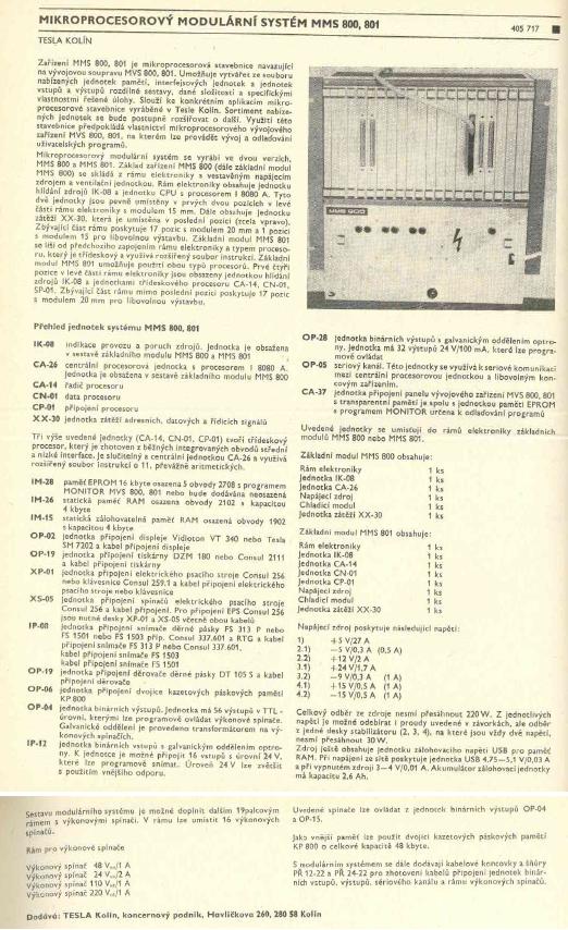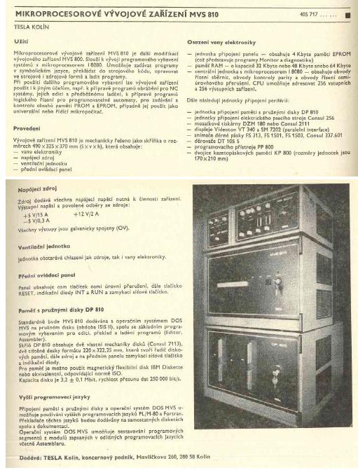 a tam tu MVS810 měli - tedy byla tam akorát ta skříň s mechanikami na 8" diskety, hlavní část, počítač tam nebyl a ty dvě bedýnky, programátor a mazadlo pamětí asi nepotřebovali - bylo to tam jako řídicí část k nějakému obráběcímu stroji, byl u toho terminál CM7202 a tiskárna CONSUL2111.