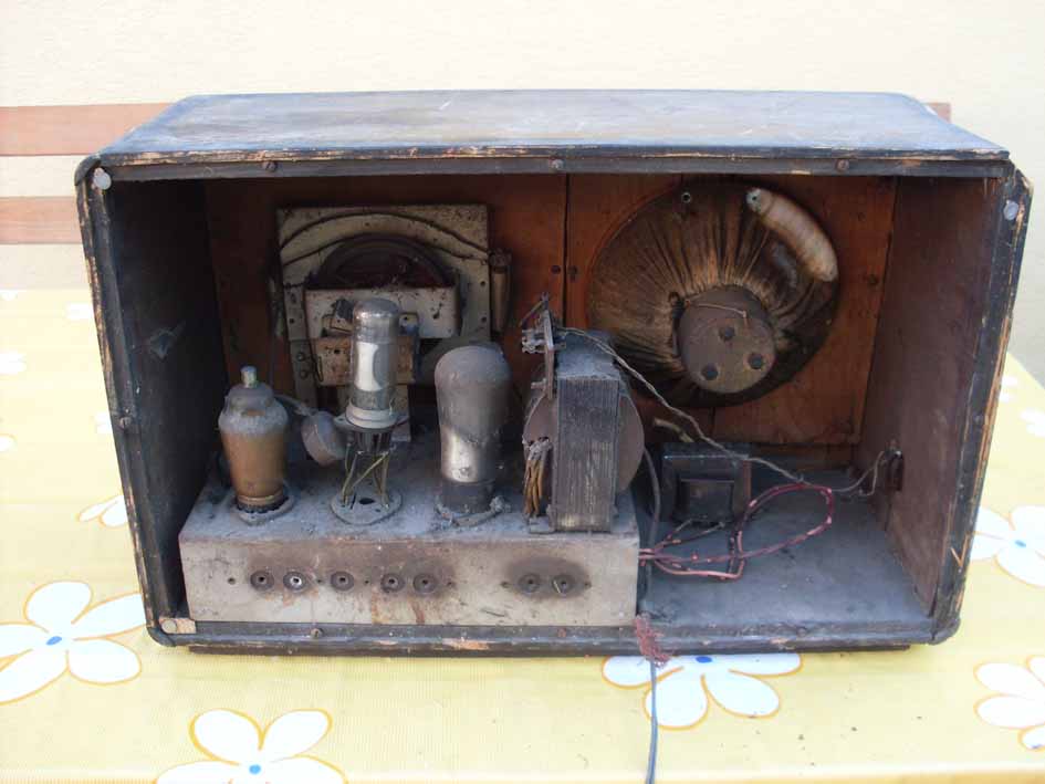 Skříňka jak již bylo psáno pochází z rádia REL, stupnice se sice podobá výrobkům ZAMPRA z padesátých let pro amatéry, ale není to ona. Mám doma ještě několik těchto stupnic a všechny mají jiný potisk skla, než je na obrázku. Chassis vypadá rovněž jako výrobek ZAMPRA, takže asi půjde o nějakou amatérskou dvoulampovku vestavěnou do hotové skříňky.
