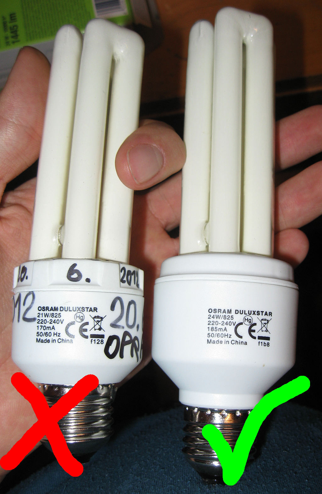 Horší byla zkušenost se značkovou Osram 7,5W koupenou v akci přímo u dovozce za asi 120,- Kč. Odstín světla zatím nejlepší v oboru úsporných zdrojů světla, dokonce se rozsvěcí postupně úplně stejně jako žárovka. Ovšem když se zahřeje, začne mrkat. Navíc na tom chladiči neudržím ruku, což se mi na příkon 7,5W opravdu nezdá. I kdyby celý příkon šel do tepla, což naštěstí nejde, tak se to nemůže ohřát až takhle. Světlo běžné stropní, zespoda otevřené. Takže ji tam ponesu zpátky.....