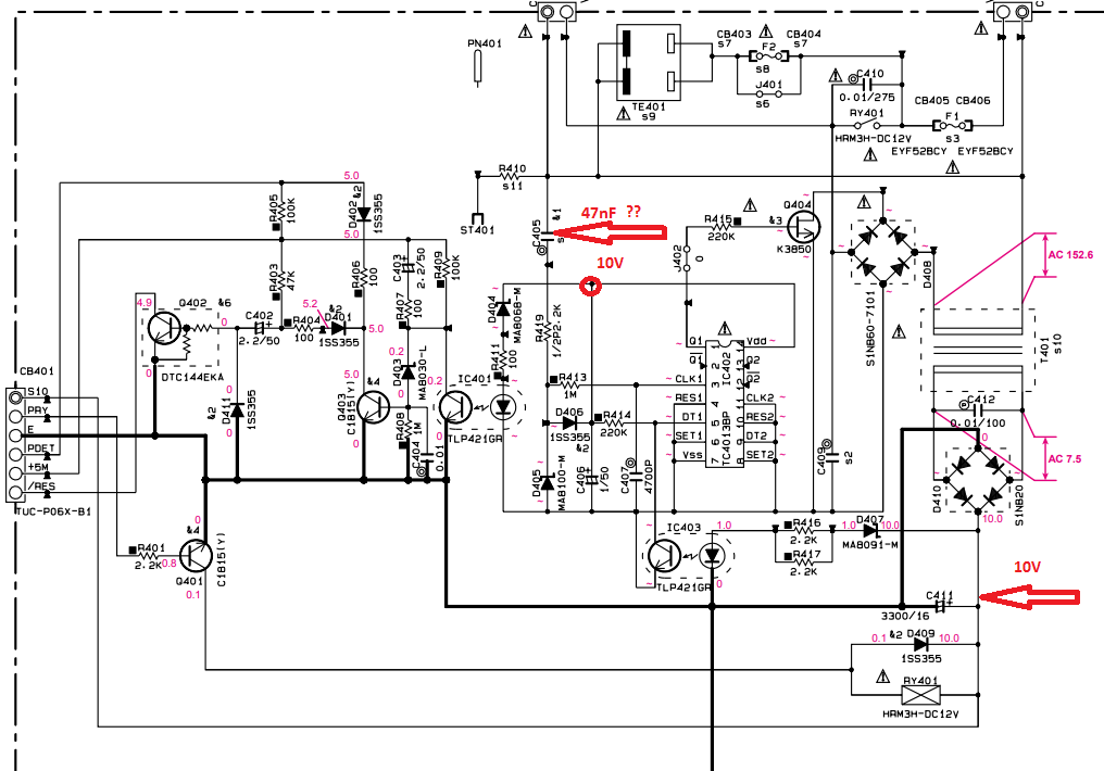 Skontroluj ešte raz ten SB-zdroj... napájanie IC402 VDD=10V