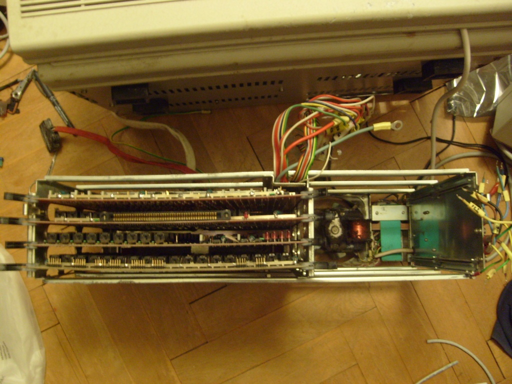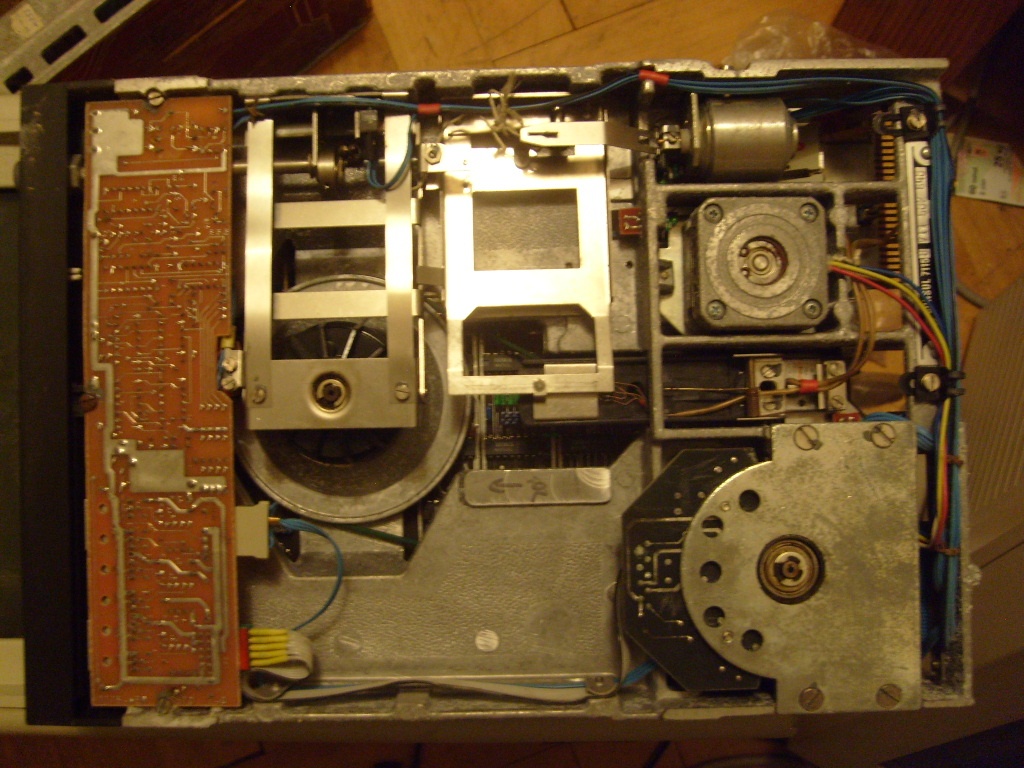 Mechanika je napájena pouze malým napětím. Řekl bych tradičně 12 a 5V možná 24V - zdroj má hodně výstupních napětí. Celý monitor včetně mechanik je s počítačem propojen pouze dvěma DB25 konektorama. Do monitoru překvapivě vůbec 230V nevede.