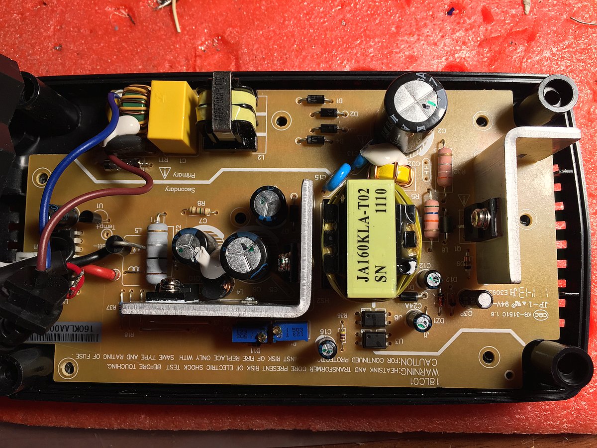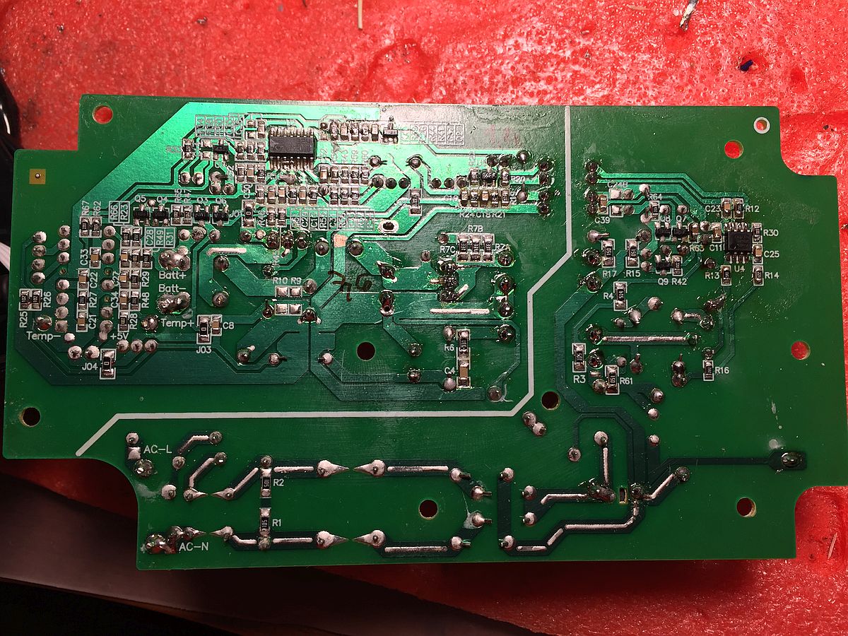 Takze, sekundarni strana funguje, jsou tam dve odbocky z trafa, tak jsem to proklemoval a od 14V se to zacalo tvarit, ze nabiji, zelena LED blikala, ale fakticky to nic nedelalo. Tak jsem zvysoval a az na 20.8V naskocilo proudovy omezeni, tak jsem pridal proud a zacal nabijet a za hodinu mel nabito.