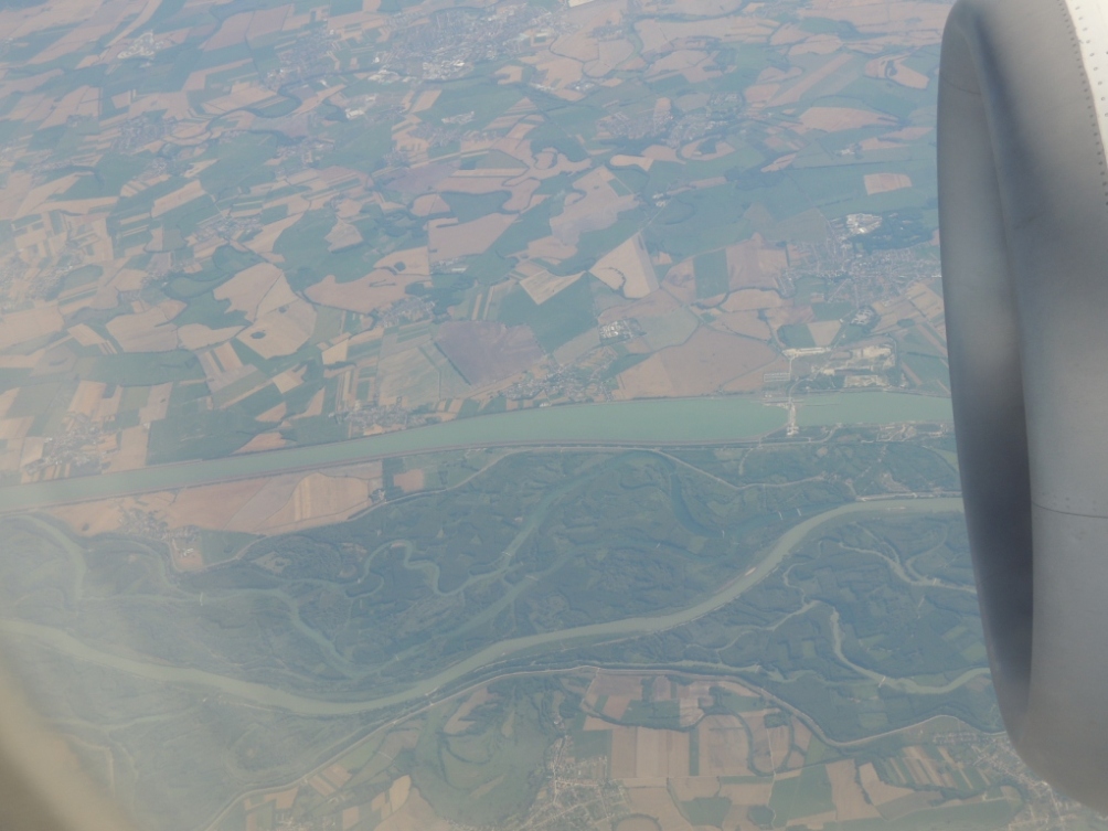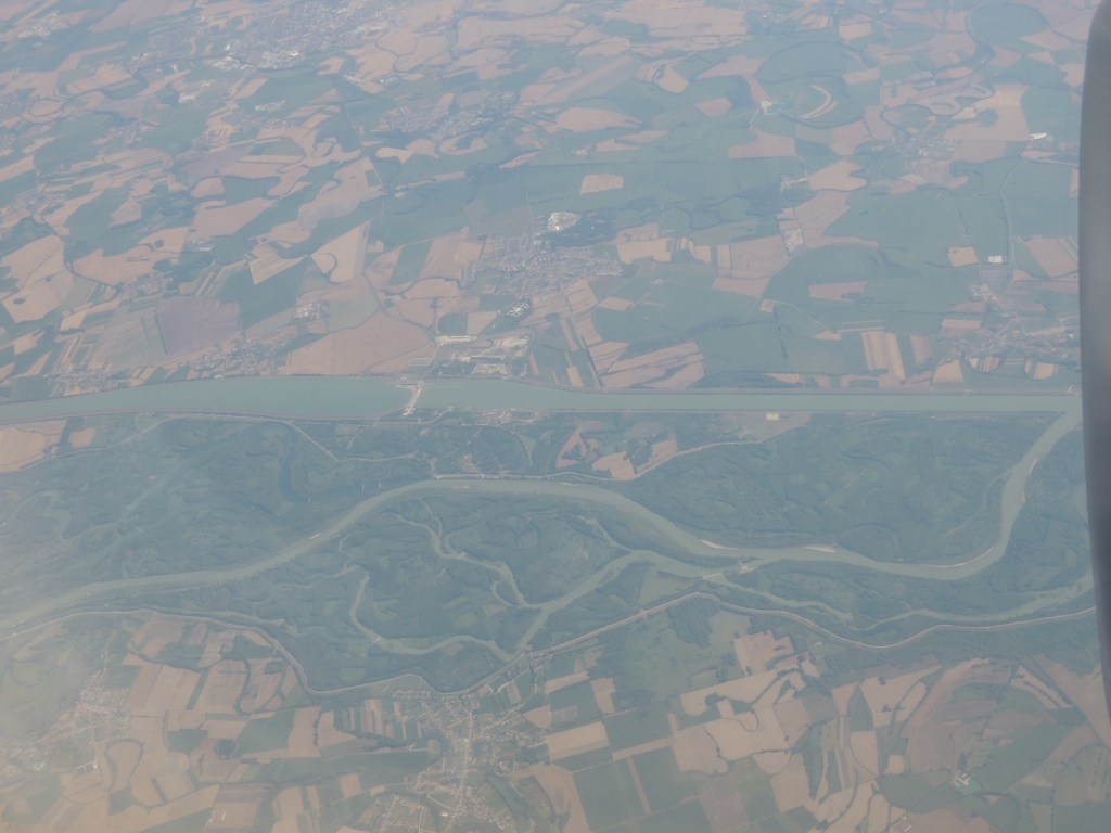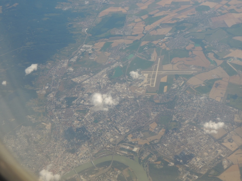 Taky tady mám jeden záběr na Dukovany - foceno 12. července cca v 10 dopoledne - a chvíli předtím i Gabčíkovo a Bratislava i s Iváneckým letištěm a přístavem a pak letiště Malacky ... Všecko za pár minut letu během posledních cca 20 minut přeletu z Hurgády do Prahy, foceno z paluby B-737-800 inmatrikulace OK-TVY z vejšky něco kolem 8500-9000 metrů, koridor vede nad Maďarskem těsně na jih vedle hranice SR-Maďarsko, jižně od Blavy a Břeclavi a pak nad Podyjím a Rakouskem až k Vídni, kde se z něj odbočuje sestupovej koridor na přiblížení na LKPR ...
