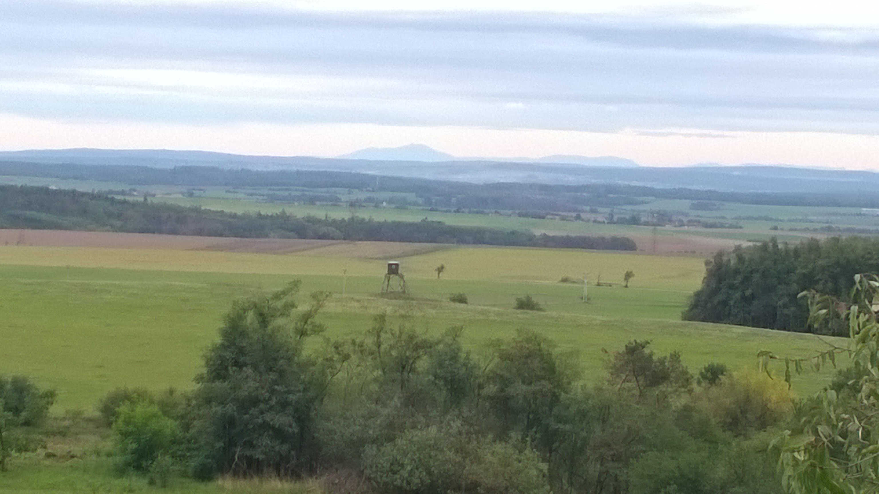 Z přibližně stejného místa jsou za hodně příznivých podmínek vidět Alpy vzdálené cca 160 km.