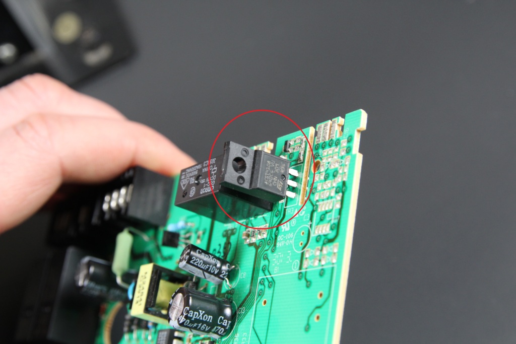 Nafoceno. Na první fotce potřebuji znát hodnotu těch dvou SMD rezistrů (číslo 1 a 2), pak je tam šoatná ještě ten tranzistro označený otazníkem, je z něho kus odlouplý a na tom co z něho zbylo je vidět, že končil číslem 103. ten triak v kroužku je také odpálený. Díky za rady.