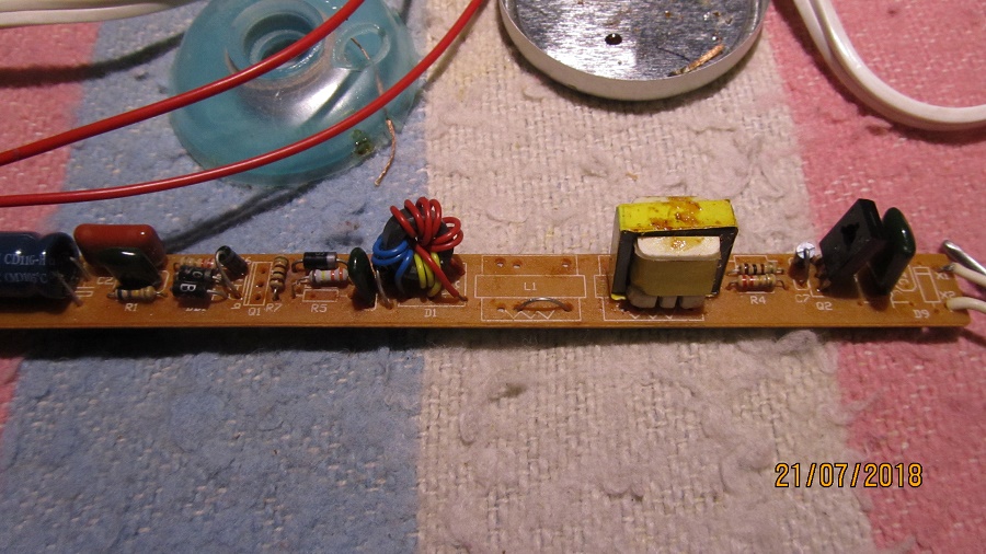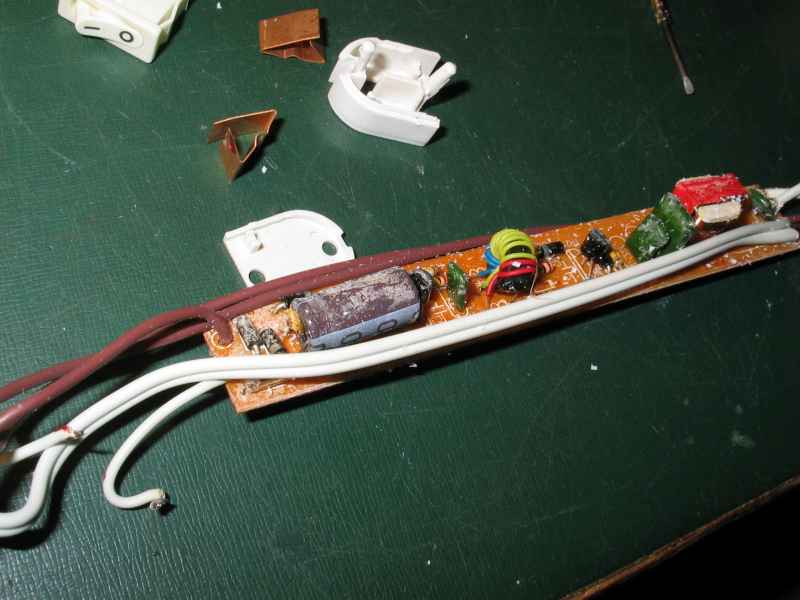 Vymenil som elyt, iny problem som nenasiel, zlozil - nesvietilo. Rozobral som, nasiel urvaty z plosaku jeden vodic k trubici - opravil, zlozil, zase nesvietilo. Tak do tretice som to rozobral, vybral diak, zmeral na zdroji - OK. Vybral tranzistory - a jeden mal zvod, v obvode nezistitelny. Vymenil som ich, zase zlozil a hura