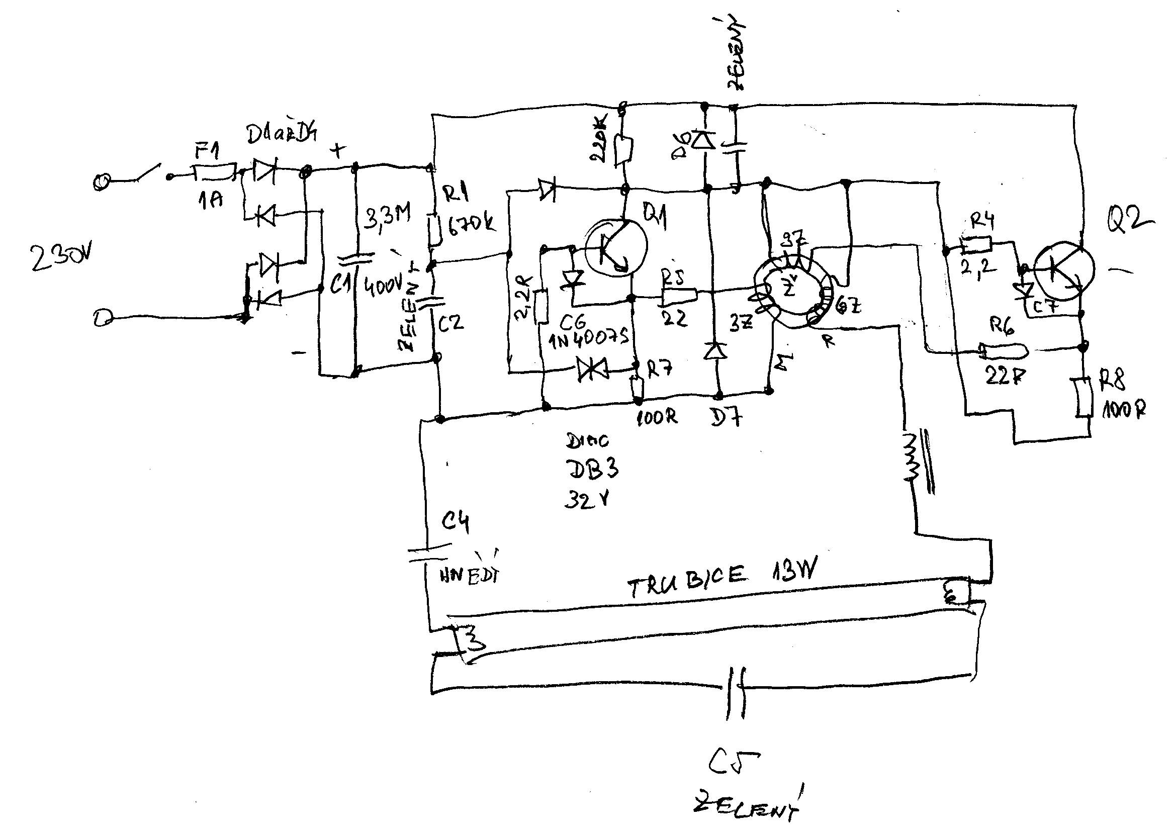 Artaban001. Dík za to schéma měniče kompaktní zářivky. Je to prakticky totožné s tím, co jsem se snažil namalovat.