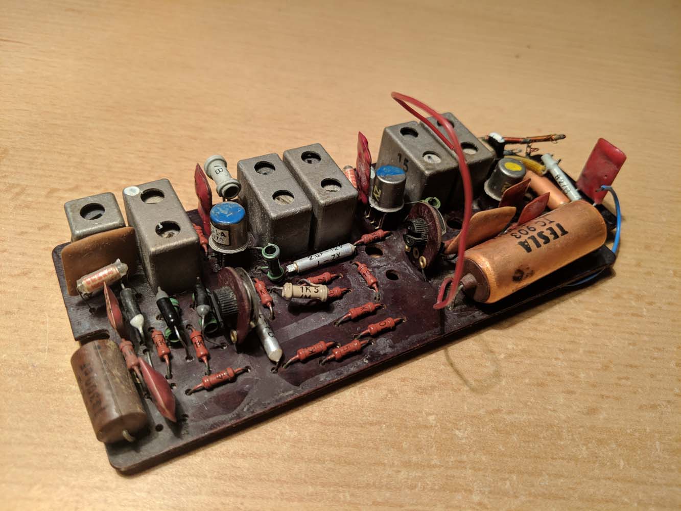 -> Crifodo -> áno, je to "banálny" kombinovaný AM/FM MF. Tiež som tajne dúfal, že to bude z nejakej rádiostanice. Ale aj tak je to nádherný plošák. Každé decénium malo svoj konštruktérsky štýl, a veci zo začiatku 60-tych rokov sú až "vymakané". Tam už nebolo čo zlepšovať, tranzistory, miniatúrne súčastky, všetko pekne tesne pre sebe na plošáčiku a vo farbách...