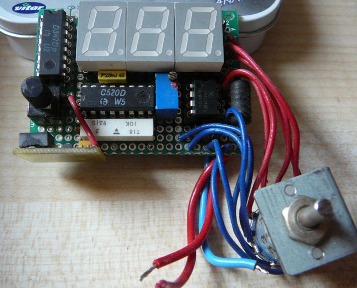 Vyndaný z krabičky, mám tam někde vakl, asi to bude chtít udělat pořádný plošňák. :-/ Ta svislá destička je měnič na 5V.