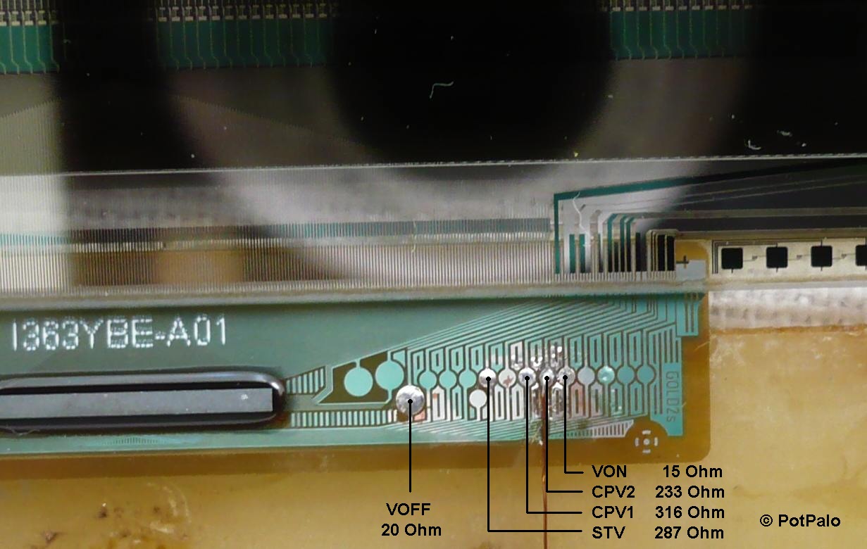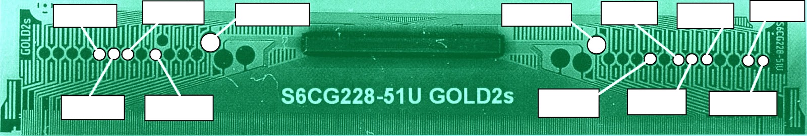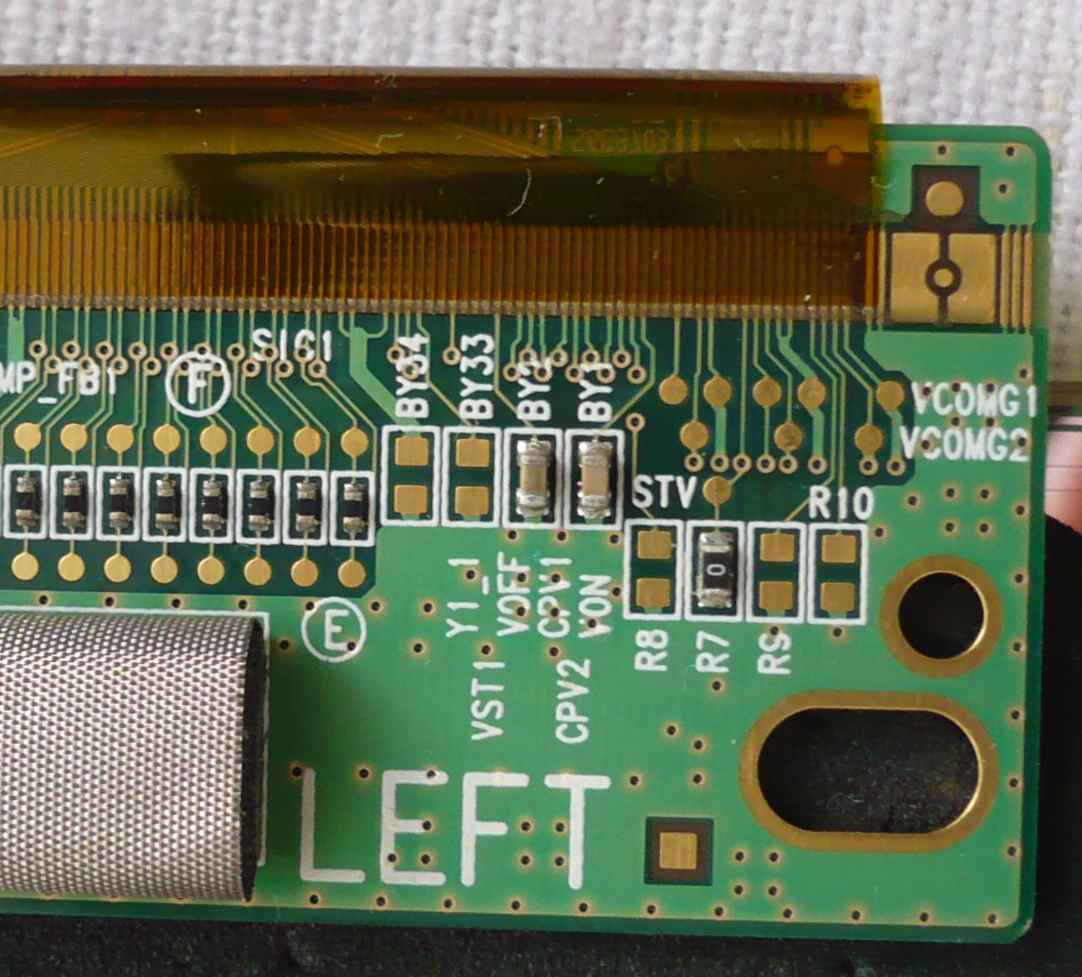 Na internete som našiel slušný obrázok toho bočného driveru, označenie S6CG228-51U GOLD2s, ale bez popisu signálov. Za popis signálov chceli zaplatiť, ale aj s obrázkom zadarmo mi pomohli, aspoň som vedel na ktoré piny sa mám zamerať. Tiež som našiel že zdvojený obraz spôsobuje signál CPV, riešili to pri inom paneli.